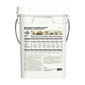 Details: Perfect during times of unexpected catastrophes or busy weekdays, Aguayo Farms breakfast and dinner variety pail is an emergency food supply that provides a delicious variety of healthy, ready-in-minutes meal options. Shelf life ranges from 10 to 25 years based on product type and storage conditions.