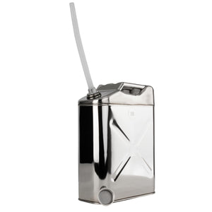 Details: The Swiss Link Stainless Steel Water Can 5 Gallon offers a reliable and versatile solution for water storage and transport during camping trips, outdoor adventures, or emergency preparedness. Crafted from 0.8mm thick, 304-grade stainless steel, this water canister ensures rust-resistant, long-term use without contamination, keeping your water fresh and safe to drink. The seamless welding and polished interior prevent leaks while eliminating the need for toxic sealants, making it ideal for food-grade water storage containers. With its 5-gallon (20L) capacity, this portable water container provides ample hydration for extended outdoor activities or emergencies. Designed for convenience, it features a 1.75-inch spout, vent screw, and free-flowing nozzle for controlled, spill-free pouring. The ergonomic handle ensures easy transport, whether you're hiking, camping, or stocking emergency water supplies at home. Compatible with Wavian storage systems and other standard holders, this 5-gallon water jug for camping is built to withstand harsh conditions, ensuring dependable performance wherever life takes you. Stay prepared and hydrated with the Swiss Link Stainless Steel Water Can. Users value its durable construction, seamless design, and reliable performance, making it the perfect solution for both everyday needs and emergency water storage. Maintenance Tip: Regular cleaning with warm, soapy water and thorough air drying are recommended to maintain the can's integrity. Avoid harsh chemicals and inspect the seal and nozzle regularly.